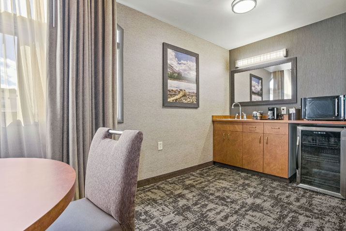 One of our specialty rooms. Larger than a standard room with a King Size Super Pillow Top mattress and a sitting area, offered on the top floor.
