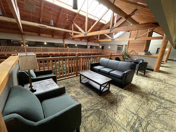 Standard room with two Queen Size Super Pillow Top Beds. Room includes entry to the third floor commons area, with a view overlooking the courtyard. Also includes a twin-size pullout sleeper sofa.
