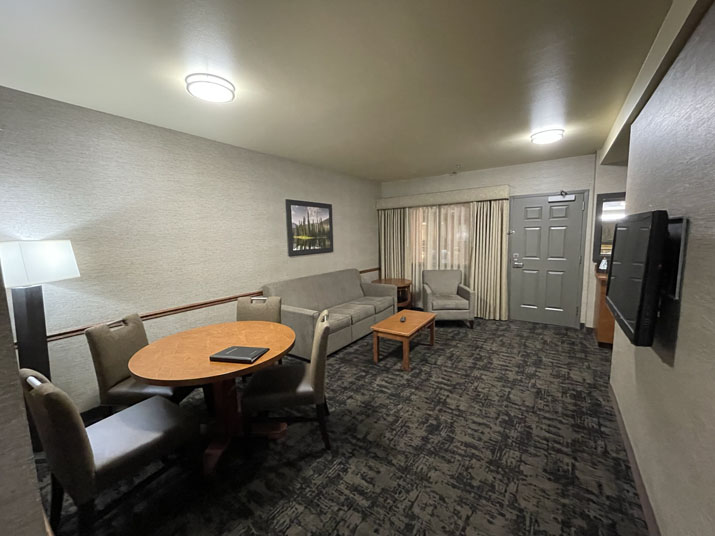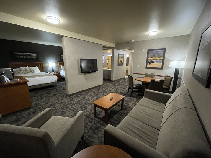 One of our specialty rooms with two Queen Size Super Pillow Top Beds. This room includes an in-room jacuzzi, and sitting area.