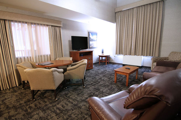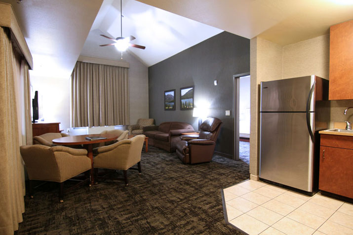 One of our specialty rooms. This room includes a full kitchen, living room, jacuzzi tub, and walk-in shower.