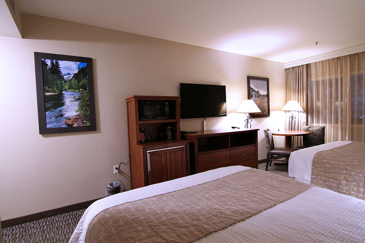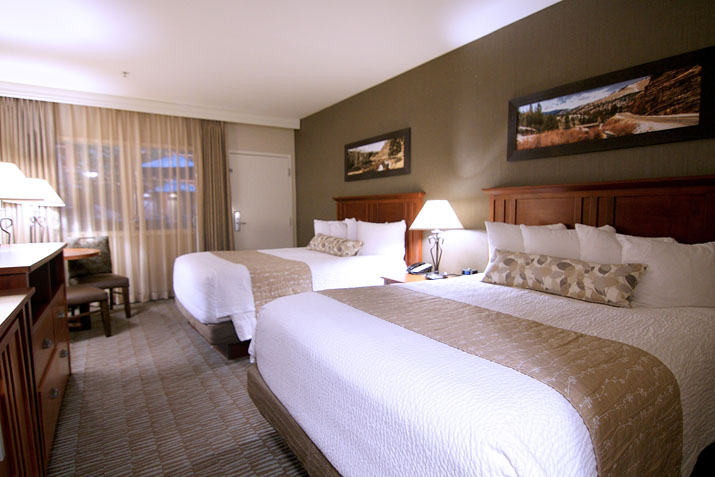 Standard room with two Queen Size Super Pillow Top Beds. Room includes additional entry to the indoor courtyard.